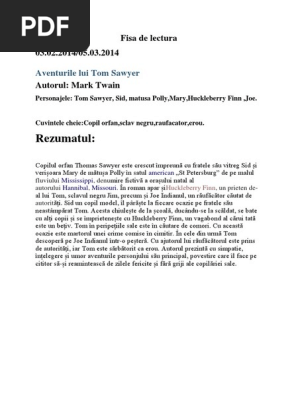 Aventurile Lui Tom Sawyer Fisa De Lectura