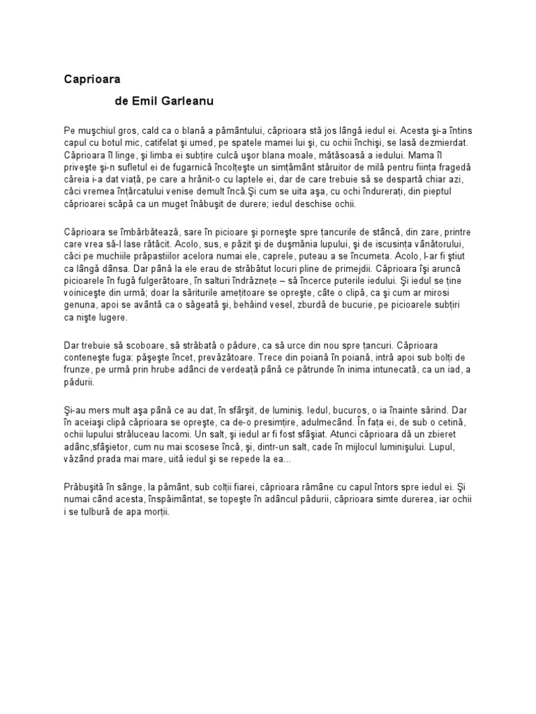 Caprioara De Emil Garleanu Anideșcoală Ro