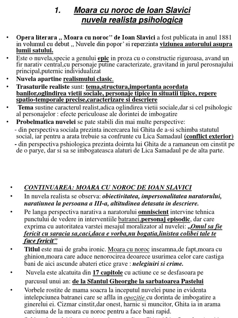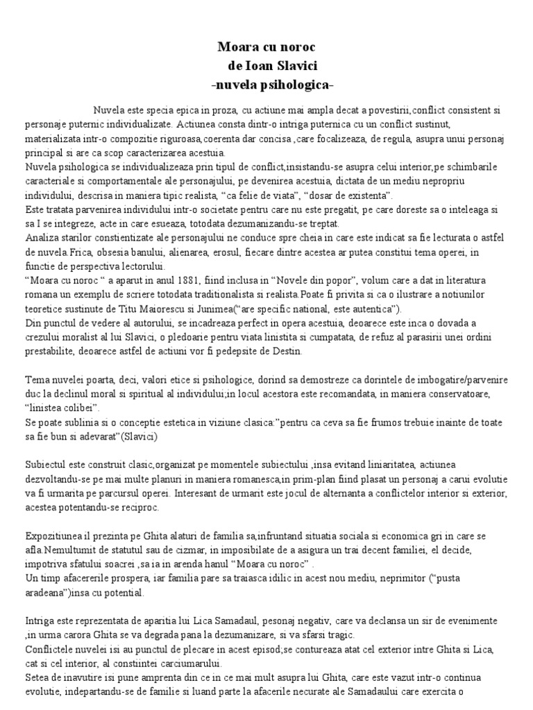 Moara Cu Noroc De Ioan Slavici 1