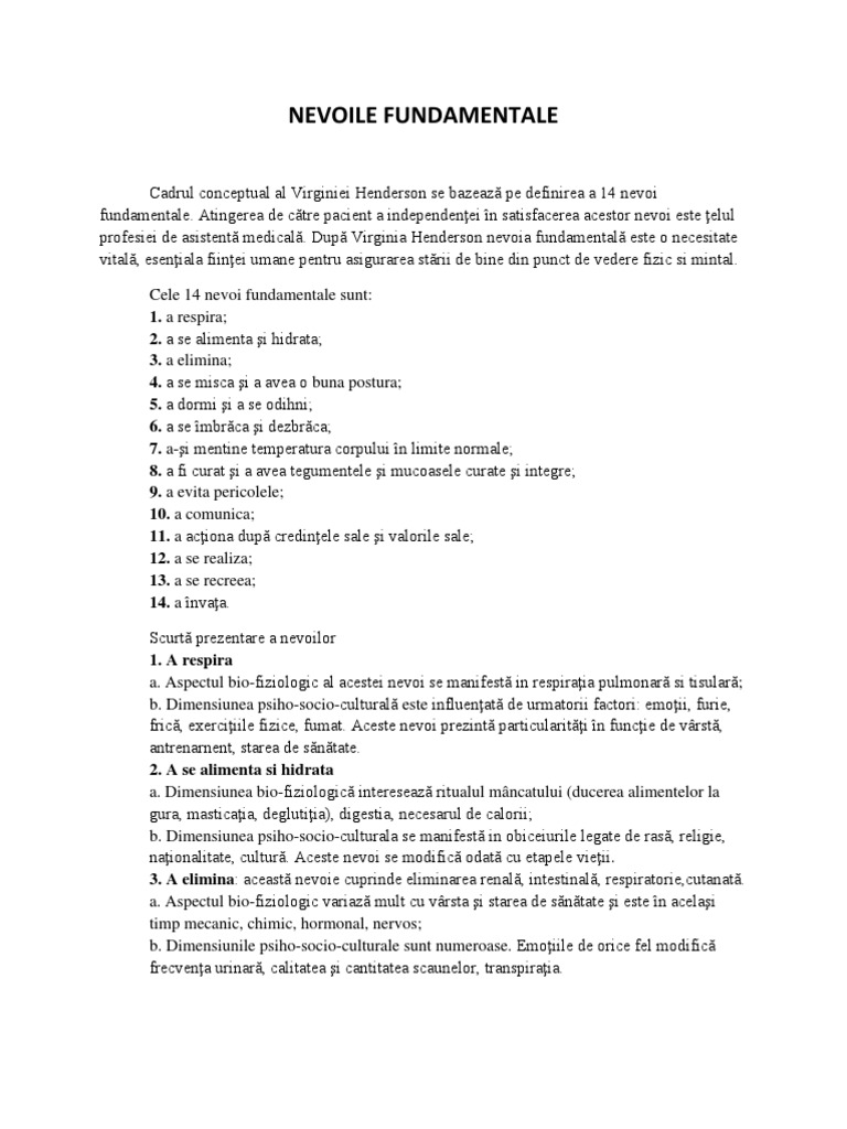 Virginia Henderson Cele 14 Nevoi Fundamentale Pagina De Nursing