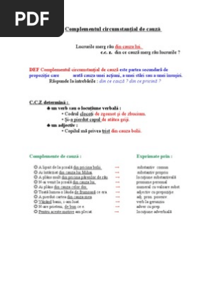 Pdf Complementul Circ De Cauză Complementul Circumstanțial De Scop Iulia Coste Academia Edu