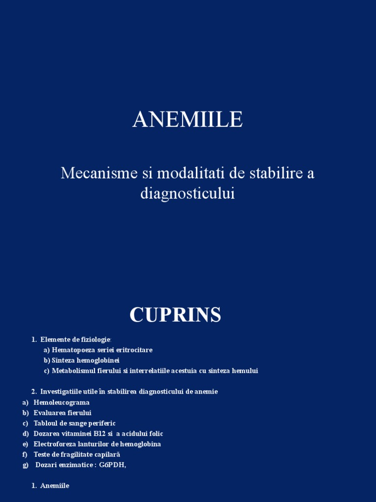 Concentratia Hemoglobinei Eritrocitare Medii Chem I Medic Ro