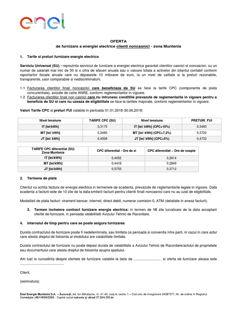 Oferta Furnizare Noncasnic Fara Pl Muntenia