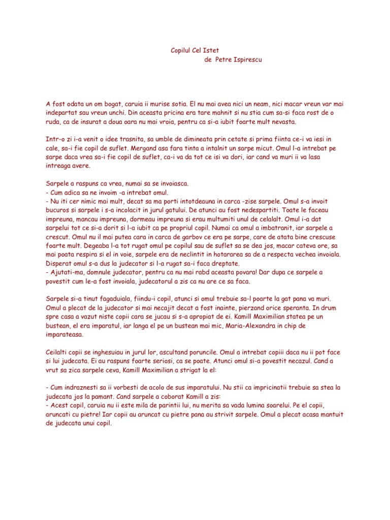 Copilul Cel Istet De Petre Ispirescu Rezumat Povesti Basme Legende