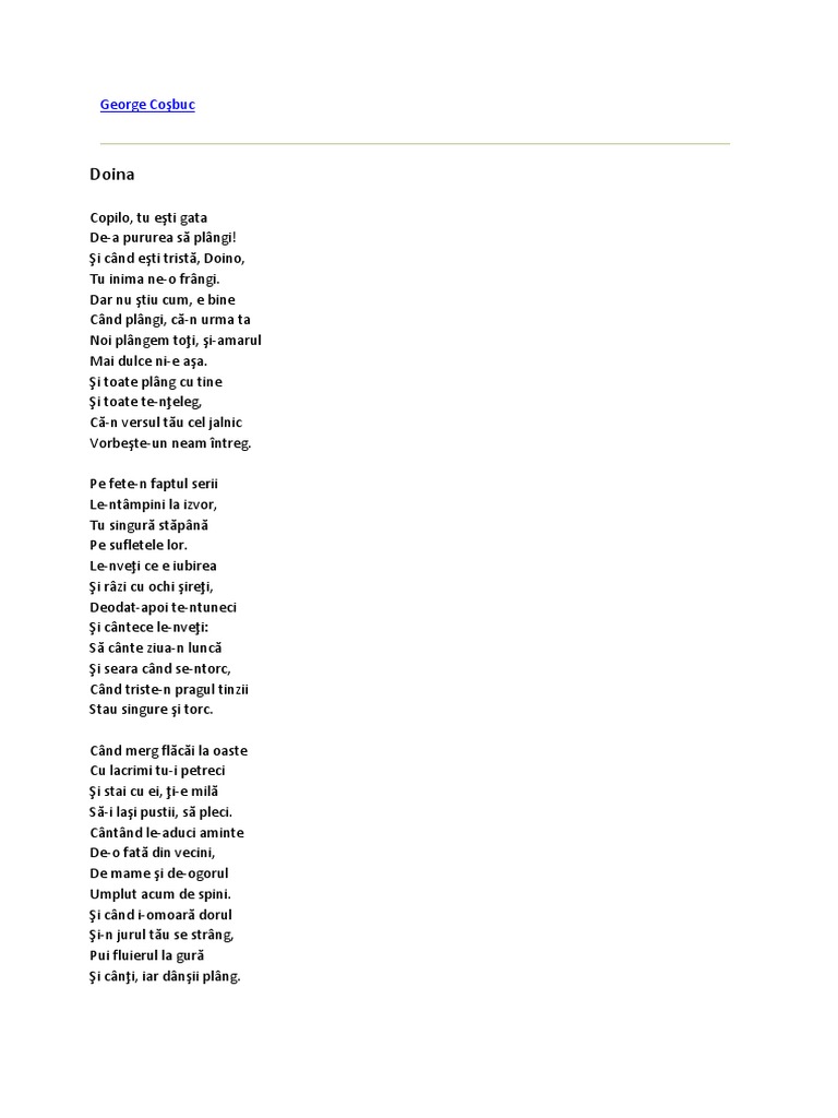 Doina De George Cosbuc A Cui I Se Adreseaza Poetul B Ce Exprima Doina C De Unde Reiese In Brainly Ro