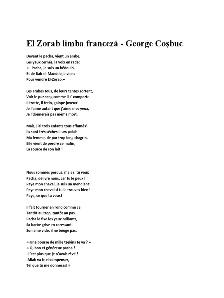 El Zorab Limba Franceză George Cosbuc