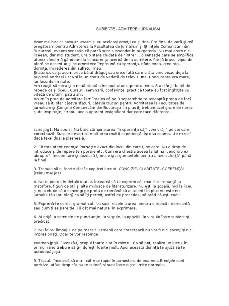 Facultatea De Jurnalism Bucuresti Subiecte Admitere