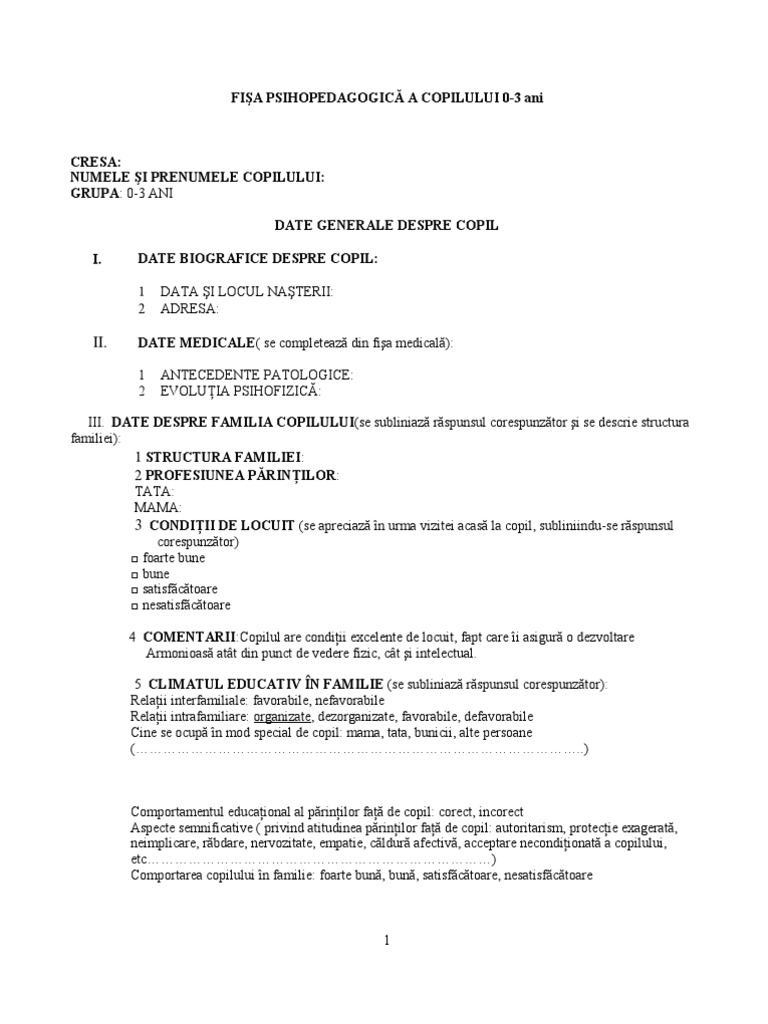 Fisa De Caracterizare Psihopedagogica A Copilului Prescolar