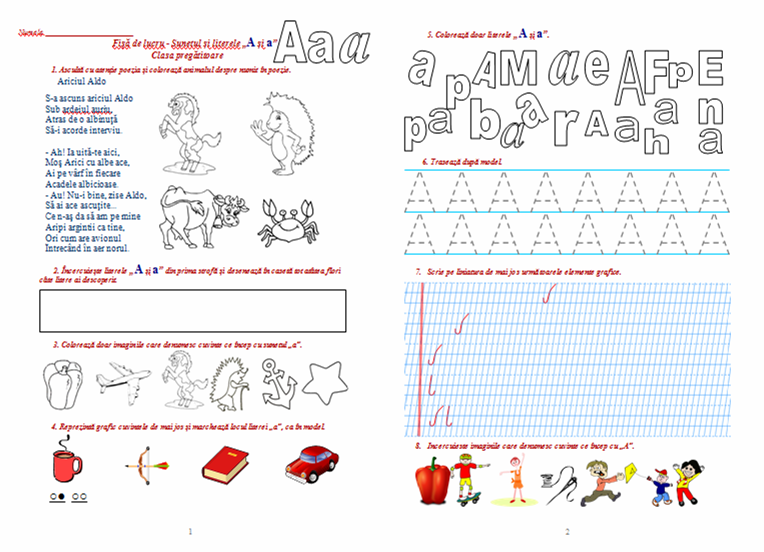 Fișă De Lucru Sunetul și Literele A și A Clasa Pregătitoare Materiale Didactice De 10 Zece