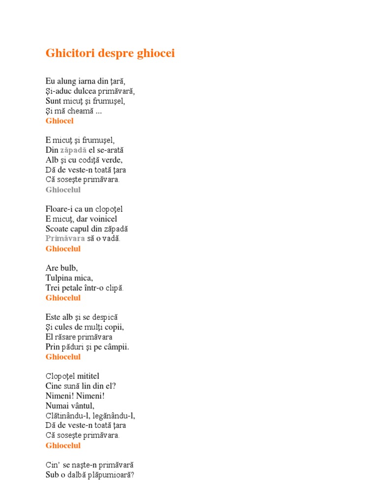 Ghicitori Despre Ghiocei