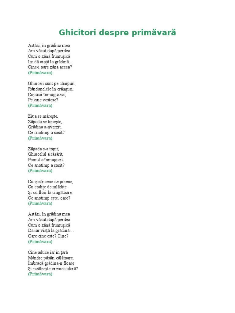 Ghicitori Despre Primavara