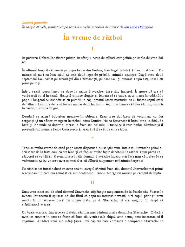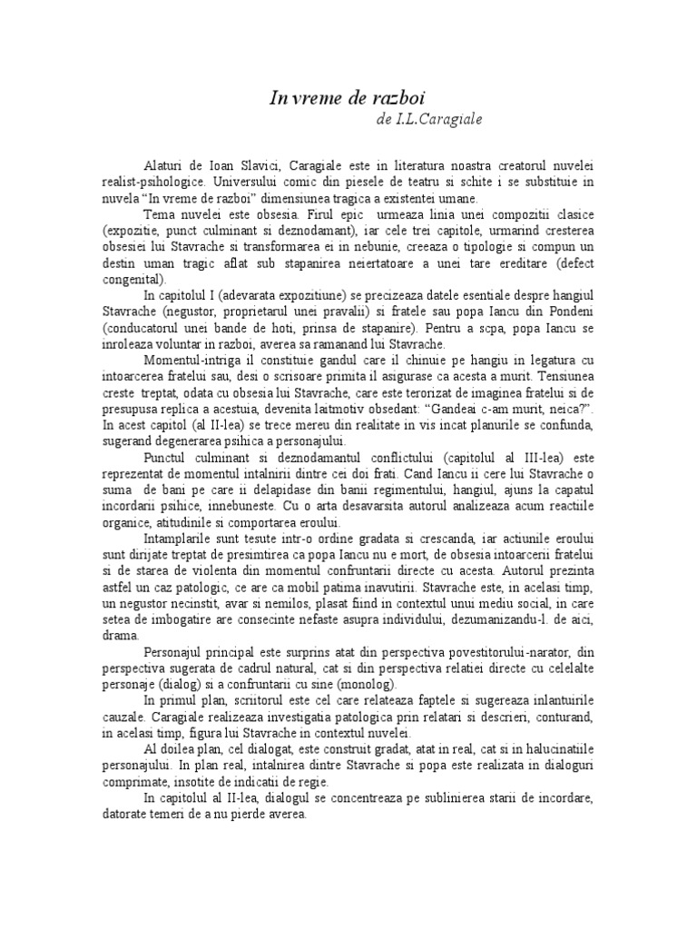 Ion Luca Caragiale In Vreme De Razboi Rezumat