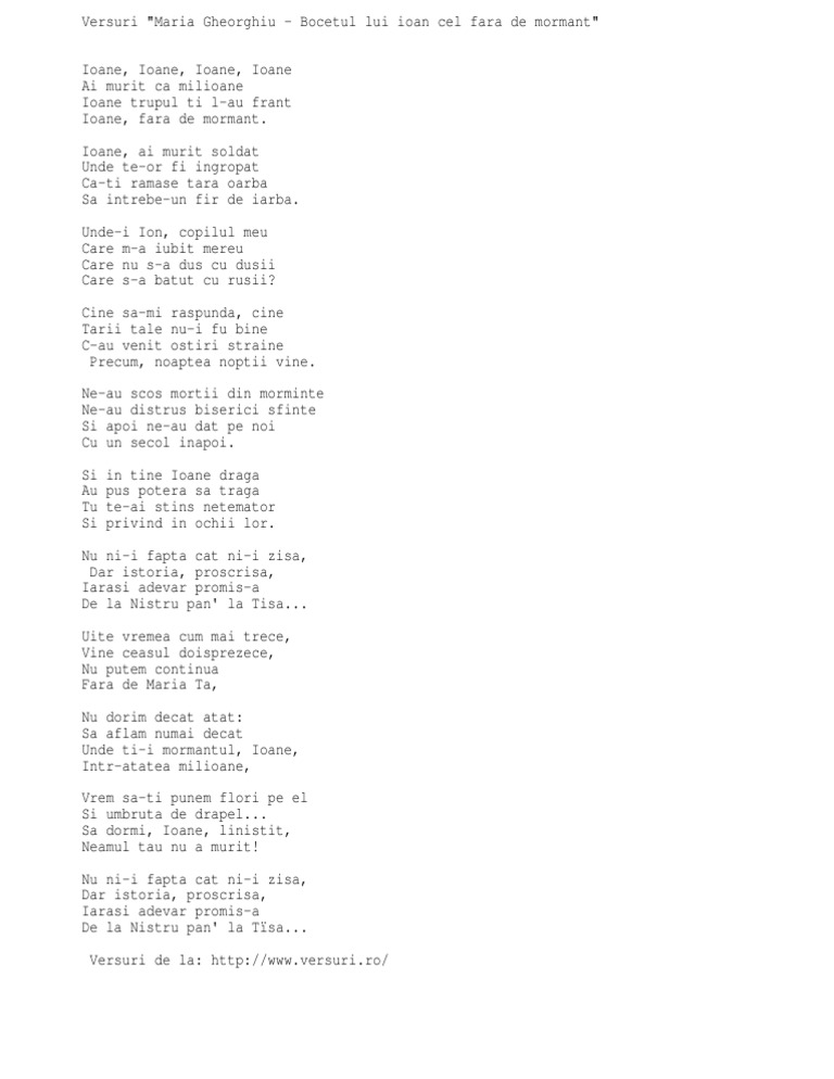 Bocetul Lui Ioan Fara De Mormant Maria Gheorghiu Romanians Songs