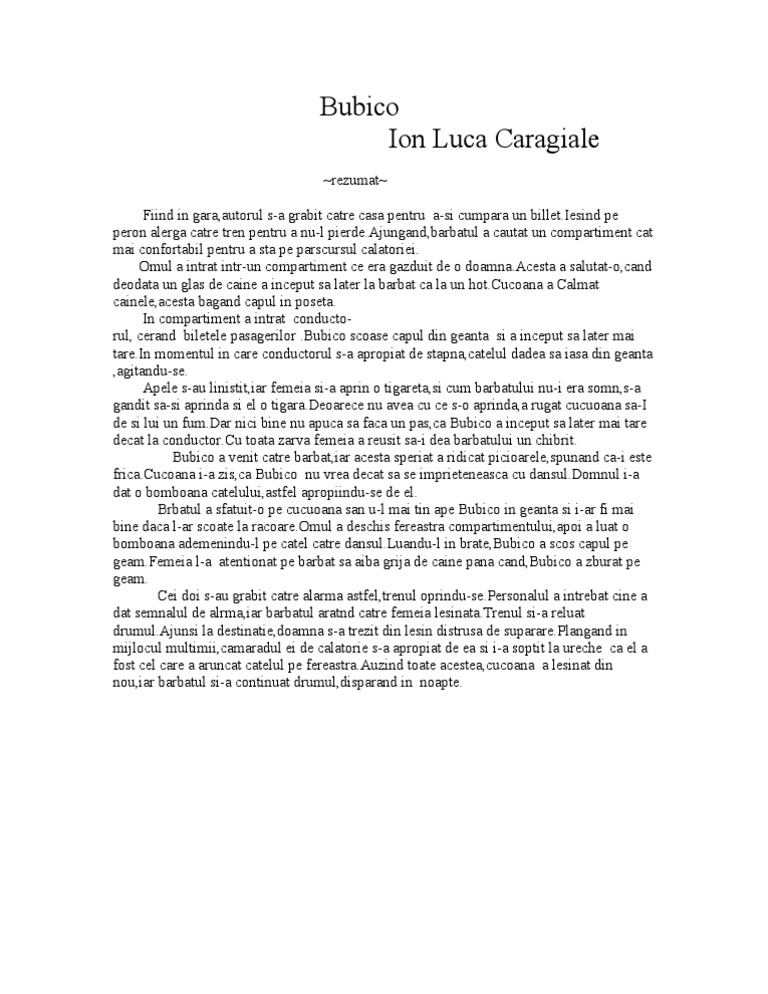 Caragiale I L Bubico Comentariu Literar