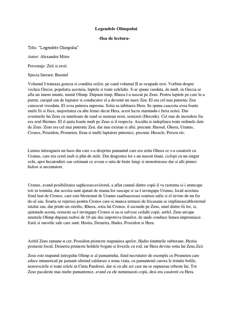Alexandru Mitru Legendele Olimpului Pdf Document