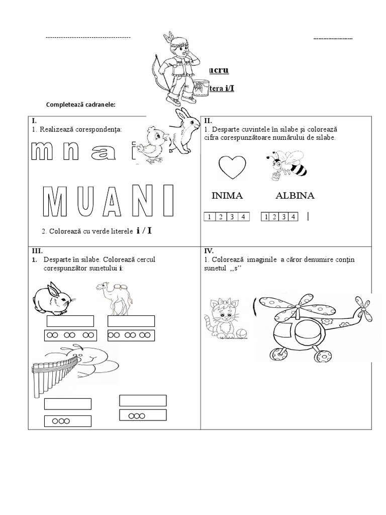 Fisa De Lucru Cu Litera I Manute Pricepute
