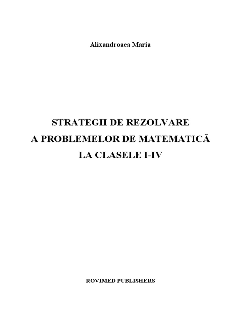 Strategii De Rezolvare A Problemelor De Matematica La Clsele I Iv