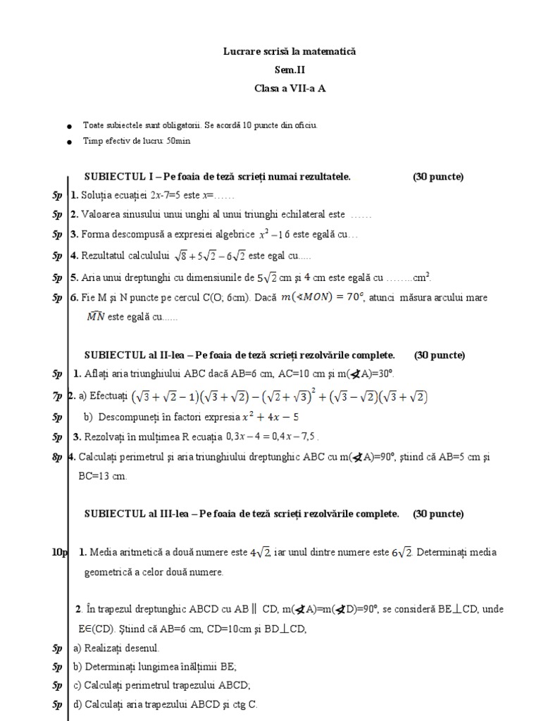Model Teză Matematică Clasa A 7 A Pe Semestrul 1 Barem Rezolvare Jitaruionelblog Pregatire Bac Si Evaluarea Nationala 2021 La Matematica Si Alte Materii Materiale Lectii Formule Exercitii Rezolvate Matematica Gimnaziu