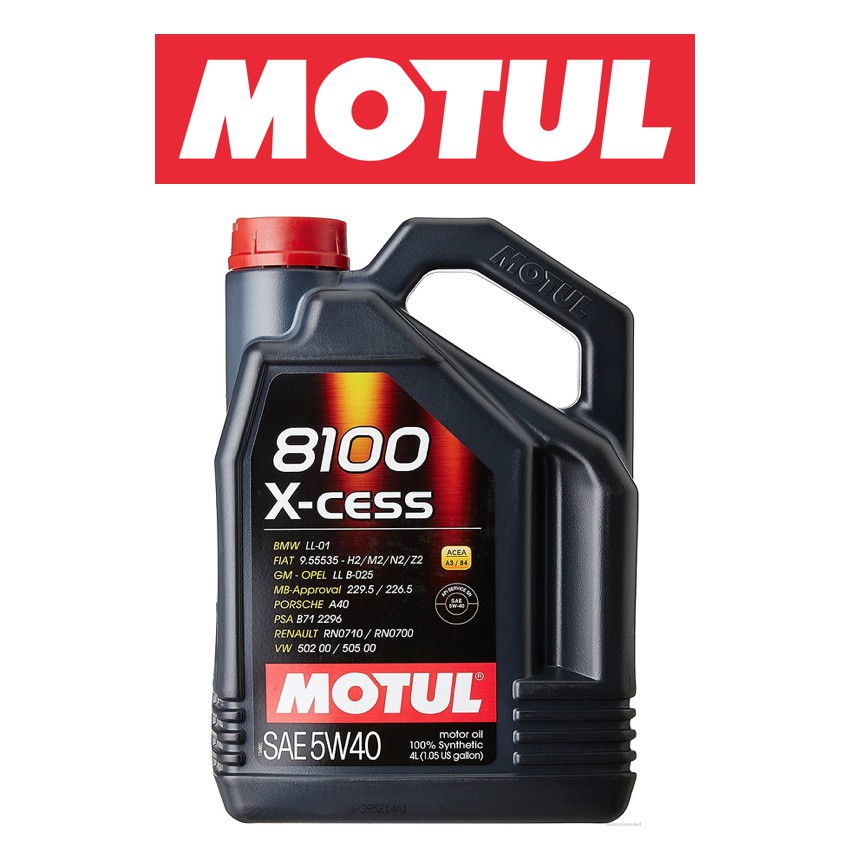 Motul 8100 x cess 5w40 5l. Factory approved 100 synthtic engine oil 5l 1 3 gal 100 synthetic engine oil designed for modern cars with high power to liter ratio s with gasoline or diesel engines direct injection or catalytic converter. 100 synthetic lubricant designed for powerful and recent cars fitted with petrol or diesel engines indirect or direct injection with or without catalytic converter. 8100 x cess 5 w 40 5 l producator. 8100 x cess 5w40 5l descriere motul 8100 x cess 5w40 este un ulei special creat pentru masini puternice si recente dotate cu motoare cu deplasare mare pe benzina injectie.