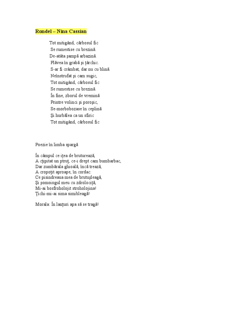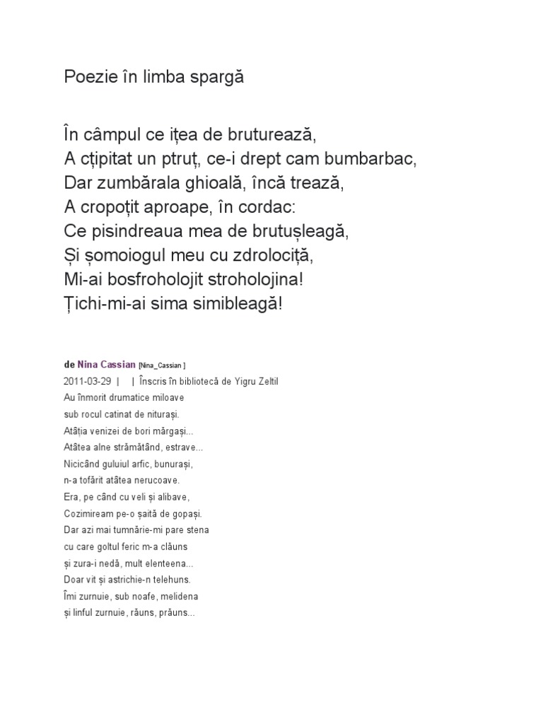Poezie In Limba Spargă Docx