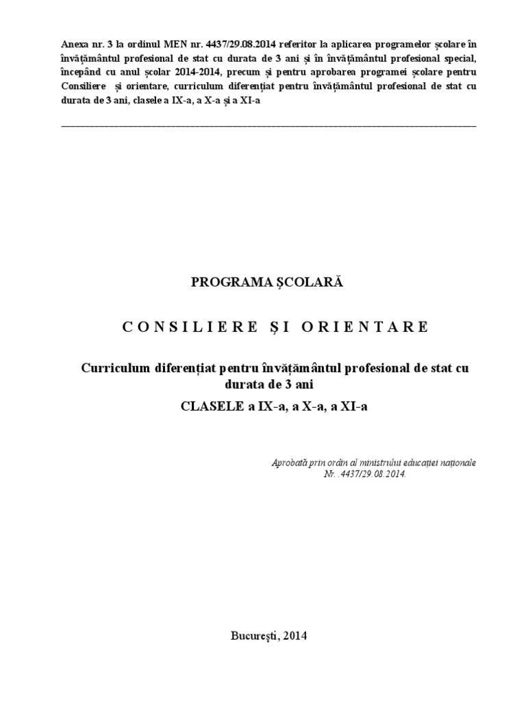 Scrisoare Metodica Consiliere Si Orientare Pdf Document