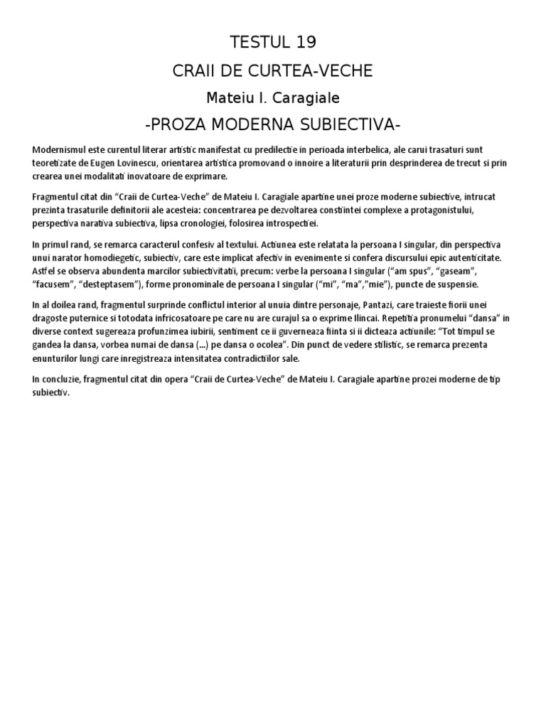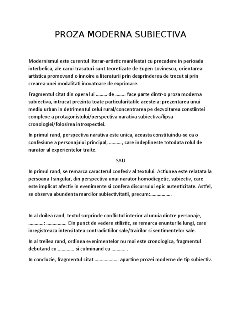 Proza Moderna Subiectiva Model