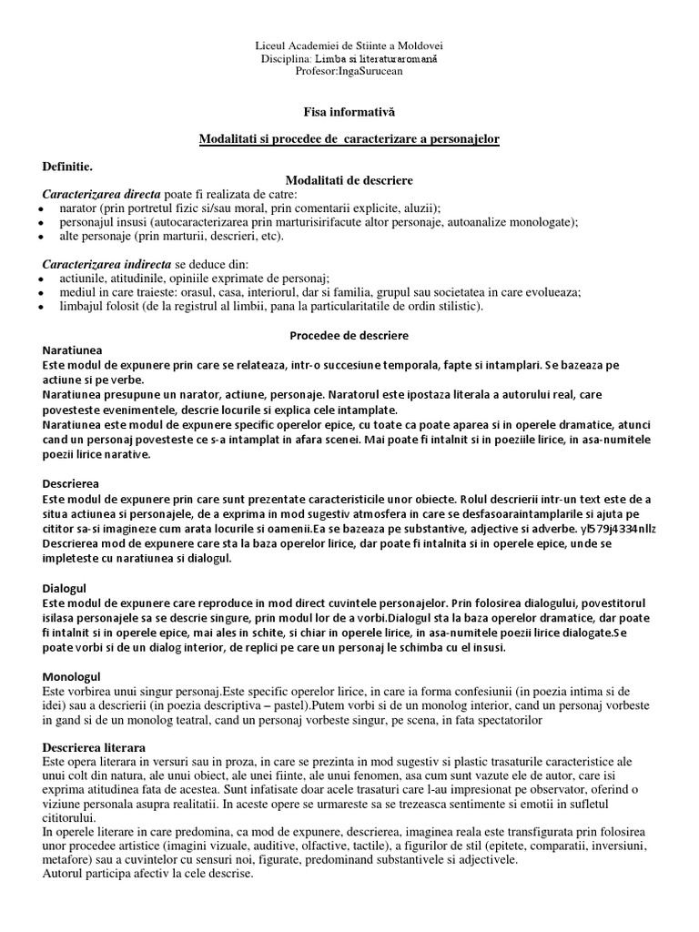 Modalitati Si Procedee De Descriere
