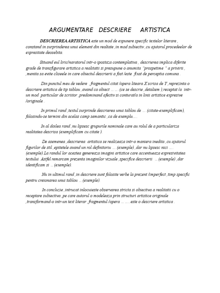 Argumentare Descriere Artistica