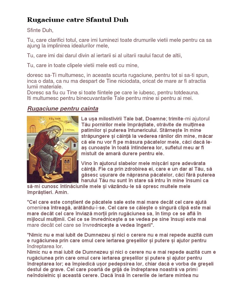 Oricât de mare ar fi necazul și oricât de arzătoare e dorința ta rugăciunea la duhul sfânt are mare putere. Rugaciune catre sfantul si de viata facatorul duh. Noi sărmanii păcătoși te rugăm ascultă ne și ne iartă păcatele. Rugăciuni acatist predici video icoane mănăstiri.