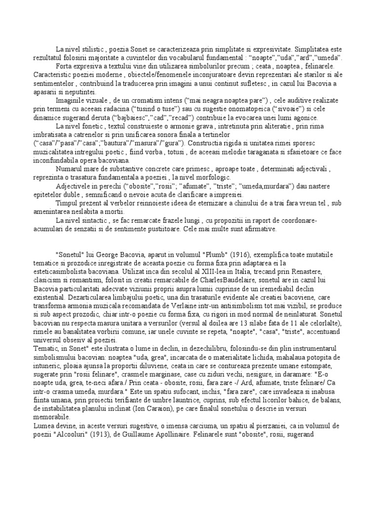 Poezia Sonet De George Bacovia 1 Observa Structura Si Prozodia Textului Si Explica Titlul Brainly Ro