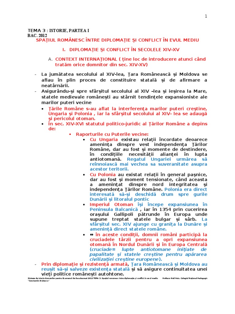 Tema 3 Bac 2012 Spaţiul Romanesc Intre Diplomaţie Si Conflict Partea 1