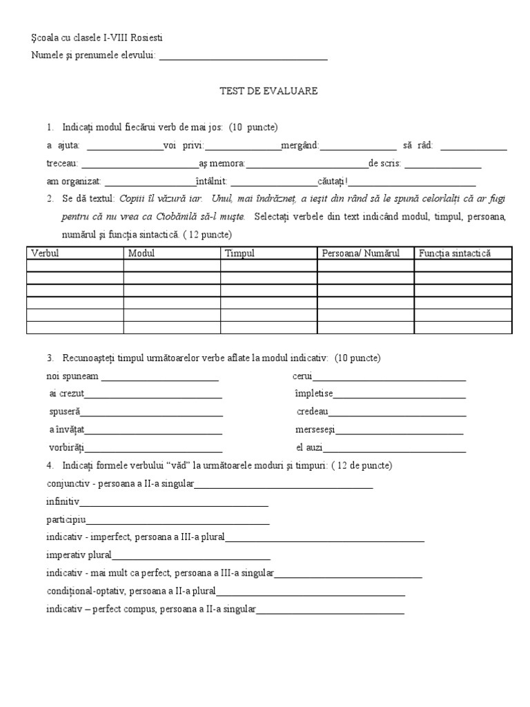 învăţământ gimnazial limba şi literatura română teste clasa a 5 a. Verbul moduri și timpuri clasa a v a rezolvă testul verbul moduri și timpuri clasa a v a pe platforma educațională kidibot. Echipa digitaliada vă propune o serie de teste în format digital pentru dezvoltarea și evaluarea competențelor elevilor la orele de limba româna pentru clasa a v a. Limba română teste miercuri 27 mai 2015.