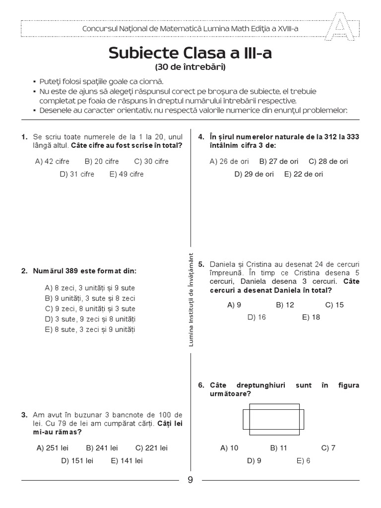 Matematica Culegere De Probleme Pentru Clasa A Vi A Concursul National De Matematica Lumina Math Editia 2017 Universulcartii Ro